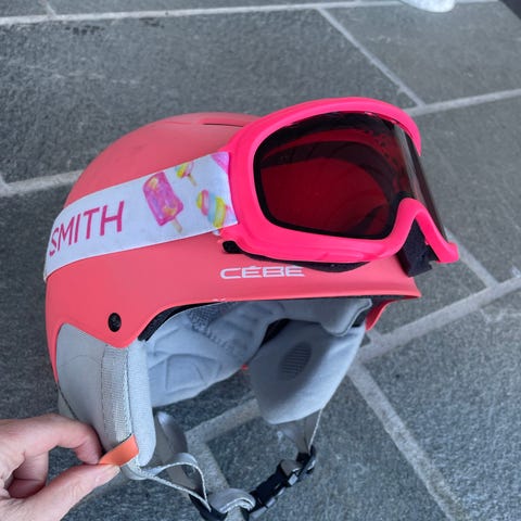 Pent brukt hjelm fra kvalitetsmerke Smith med for inni for ekstra varme. Følger med et par slalombriller fra Bliz. Selges samlet. Passer for barn opp til ca 12 år (eller da ville tenåringen ha hvit hjelm..)