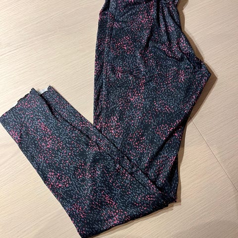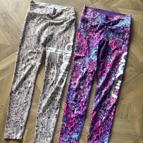 Selger 2 tights i str XL. De er som nye, er bare prøvd på. Begge har scrunch og bred strikk i livet. De er kroppsnær og har god stretch, feminin fasong. Selger en rosa og en grå med samme mønster. Det er lommer på utsiden av begge sidene. Se bilder for nærmere detaljer. Kr. 300,- for begge eller 175,- pr stk.