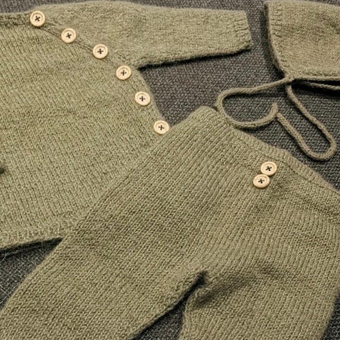 Nydelig hentesett i ull med bukse, jakke, sokker og lue selges