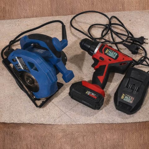 Power Craft drillsett med elektrisk drill i koffert og tilbehør. Settet inneholder flere bor og bits i ulike størrelser, samt diverse tilbehør organisert i plastkoffert med håndtak. I tillegg følger det med en blå elektrisk vinkelsliper med kabel. Egnet for enkle bore- og slipeoppgaver i hjem og hobbyverksted.