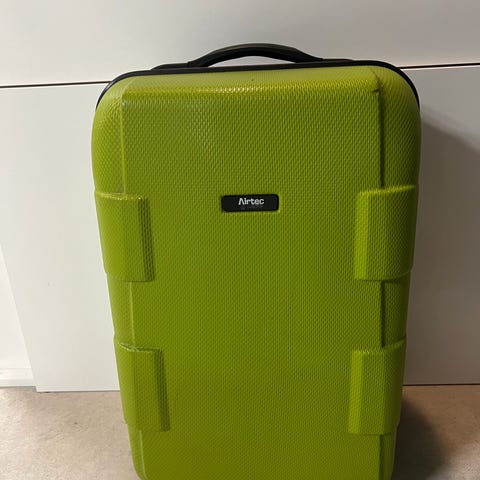 Trillekoffert / kabinkoffert i svart tekstil. Kofferten har to hjul, uttrekkbart teleskophåndtak og bærehåndtak på toppen. Innvendig er det stropper for å holde innholdet på plass, samt en glidelåslomme i lokket. Egnet som håndbagasje avhengig av flyselskapets målkrav. Den er lite brukt og er i god stand.