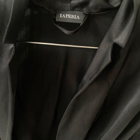 Hugo Boss bluse i størrelse S. Ytterblusen er laget av 89% silke og 11% metalisert fiber. Innertoppen er laget av 97% viskose og 3% elastan.