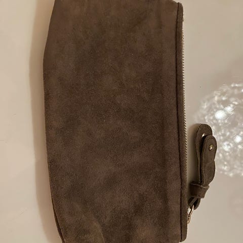 Den er helt ny og aldri brukt. Plastikken er fremdeles på håndtakene til glidelåsen. Veldig grei til å oppbevare smykker eller sminke. Kan brukes til reise-veske til små ting feks.