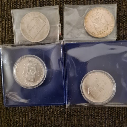 Savner du skrin til dine (gull)mynter? Jeg tilbyr dette fine skrinet i ekte tre med plass for 10 mynter, diameter opp til ca 32 mm. Se ellers info på bildene. Kan om ønskelig også sendes utenom fiks ferdig-ordningen.
