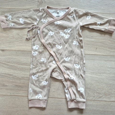 De 3 øverste er i str 56 (1-2mnd) og brukt av 1 barn. De 2 nederste i str 62 (2-4mnd) og brukt av 2 barn.