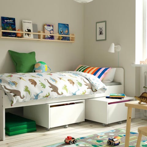IKEA SLÄKT Seng med oppbevaring og ribbebunn hvit 90x200 cm
