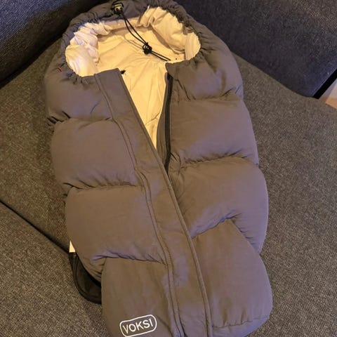 Dunpose med ull i underdelen, så denne er god og varm. Kan brukes både i bilstoler og i barnevogn 😊