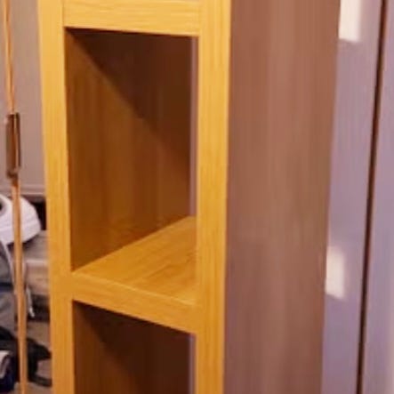 Hylle som kan stå opp, ligge ned eller skrus på vegg.