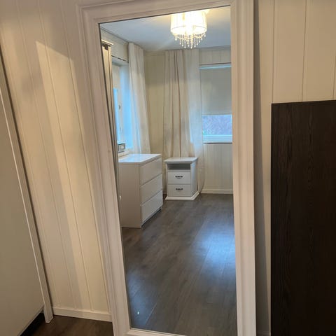 Jysk speil i veldig god stand, mål 0,70 × 1,60 m. ,med dekorative ornamenter. Speilet har en ramme med detaljerte utskjæringer som gir et dekorativt preg. Passer til bruk i ulike rom for funksjonell speiling og dekorasjon.