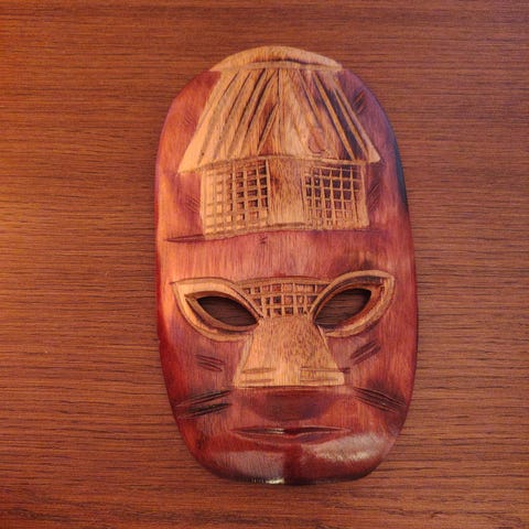 Opphav og kunstner er ukjent. Trolig laget som dekor-/kunstobjekt i siste halvdel av 1900-tallet, og ikke et etnografisk eller rituelt objekt. Informasjonen er basert på egne vurderinger og det som er funnet i åpne kilder.