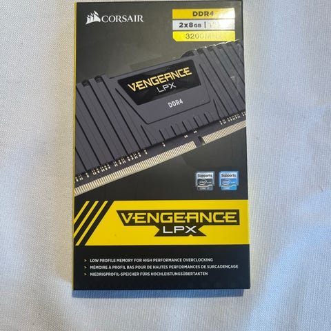 Corsair Vengeance LPX RAM-modul. Designet for bruk i datamaskiner for å øke minnekapasiteten. DDR 3 ram har 4 stk kom med bud