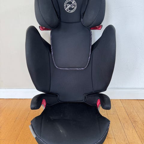 Cybex Solution X2-fix barnesete for barn i vektgruppen 15-36 kg (ca 4-12 år). Kan monteres både med og uten isofix, og ryggen kan fjernes fra sitteputen når barnet er stort nok til å bare bruke pute.