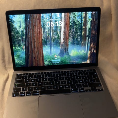 Apple MacBook Pro 13" bærbar datamaskin i sølvfarge. Modellen har en skjermstørrelse på 13 tommer og er laget av aluminium. Passer for generell bruk innen arbeid, studier og underholdning.