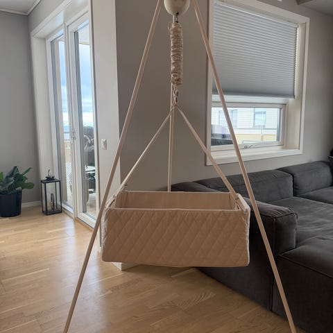 Har Bluetooth-funksjon og kan kobles til egen app. Det har alltid blitt brukt babynest i vuggen.