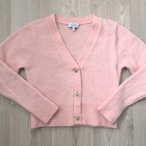 H&M Cardigan i ly grønn farge, størrelse XS. Er stor i str, så passer en i str s/m. Laget av en blanding av mohair og ullmateriale. 32% ull og 31% mohair. Passer for kvinner.