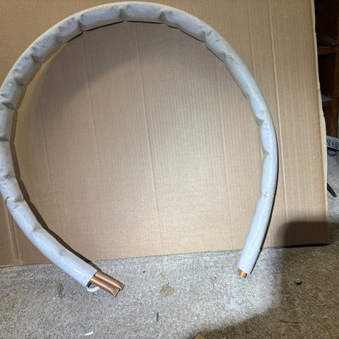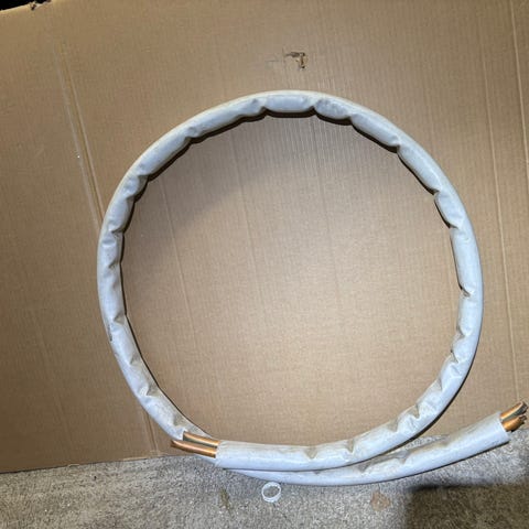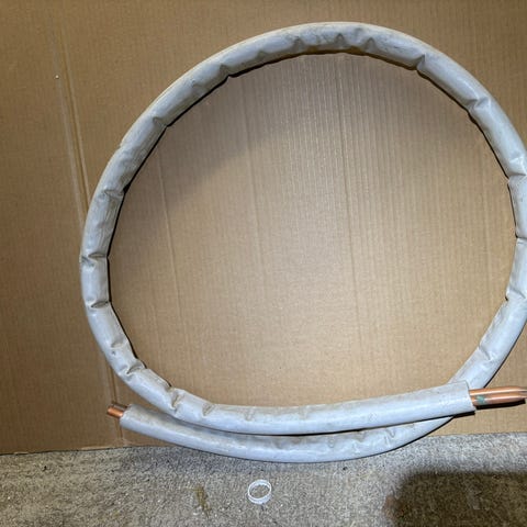 2 x 12 mm. Doble kobberrør 12,4 m. 8,6 kg. Isolera.