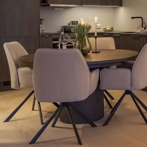 Bordet kan forlenges med 2 innleggsplater. Selges med 3 innleggelsplater. Fikk en ny grunnet reklamasjon på hakk.