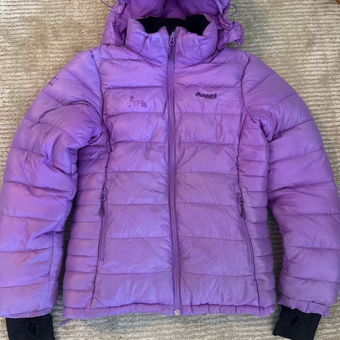 Kjempefin og varm militærgrønn dunjakke fra Bergans. Jakken har en kranglete glidelås som bør skiftes, så dette er jakken for deg som er god på sånt. Bortsett fra dette fungerer jakken fint, alle andre glidelåser og lukkemekanismer etc er uten feil.