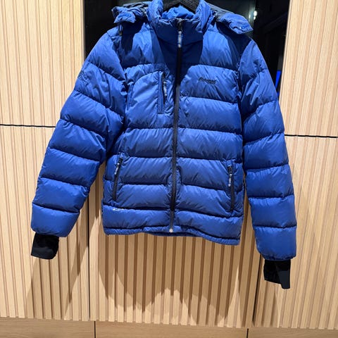 Nb jakken mangler hette. Både hette og ny glidelås kan fikses på Bergan sitt syverksted/kundeservice.