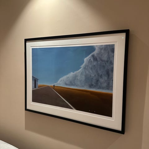 Signert og nummerert kunstverk i svart-hvitt, innrammet med passepartout.