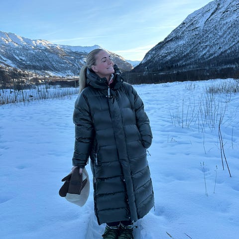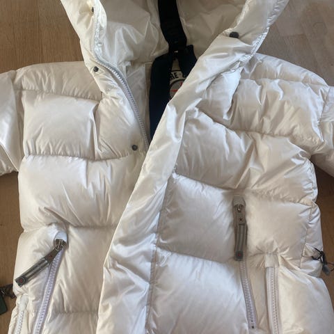 Brukt et fåtall ganger og fremstår som ny. Blir for stor for meg . Utrolig praktisk og go og varm.Lengde fra skulder til kant nede er 120cm.