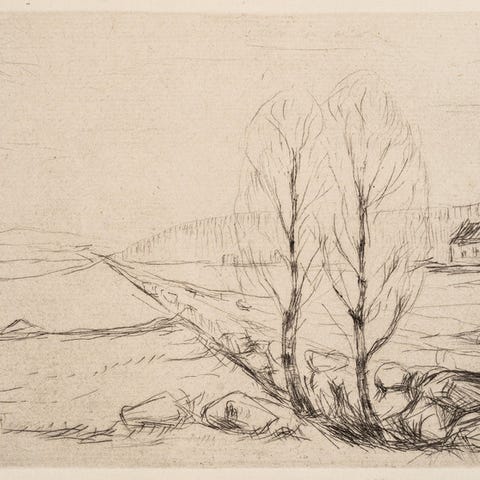 Med original radering av blant annet Edvard Munch (Norsk Landskap)