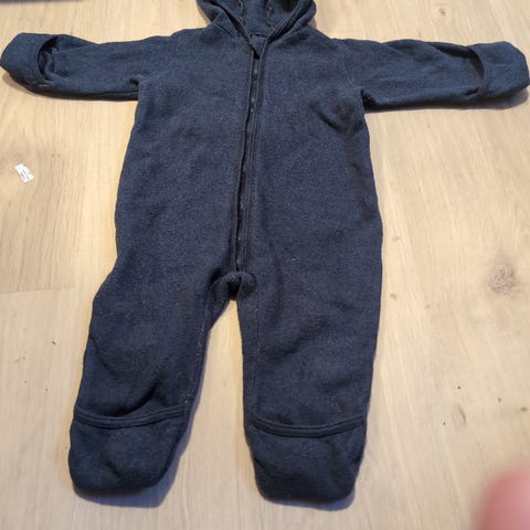 bonprix Fleece Heldress i blå farge, størrelse 80-86, med en søt bamse på rumpa