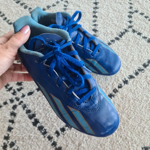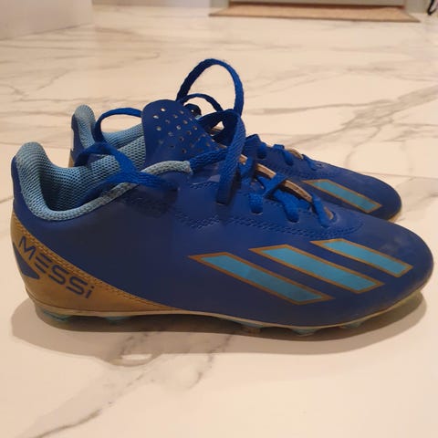 Adidas Messi fotballsko for gutt i størrelse 35. Skoene er hvite med røde og svarte detaljer. Gress/kunstgress. Brukt få ganger.