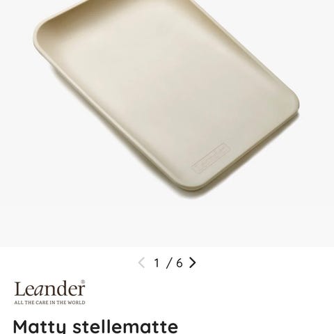 Leander stellematte med myk klut i beige farge med hvite prikker. Passer til stellebord og gir en komfortabel overflate for barnet under stelleøkter. Fargen beige.
