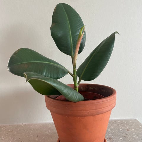 Fin liten gummifiken. Nytt blad på vei. Ingen skader eller skadedyr observert. Selges uten pyntepotte/ytterpotte.