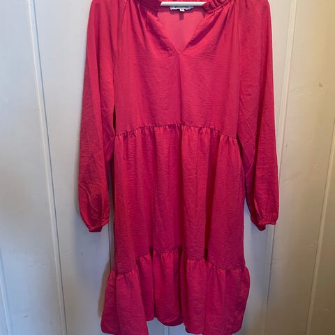 Ny Floyd Hverdagskjole i størrelse M for dame. Kjolen er rosa og laget av polyamid. Den har kort erme og et mønster i blondestoff. Egnet som hverdagsplagg.