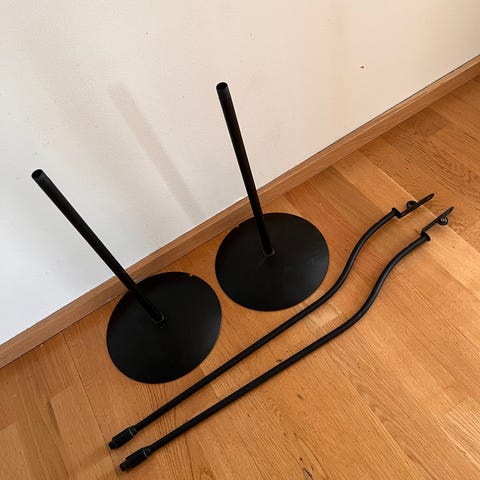 Disse har tung, stabil trekantfot i metall, og skruefeste i toppen slik at høyttalerne sitter godt fast. Perfekte for stativhøyttalere (bokhyllehøyttalere) i middels størrelse.
