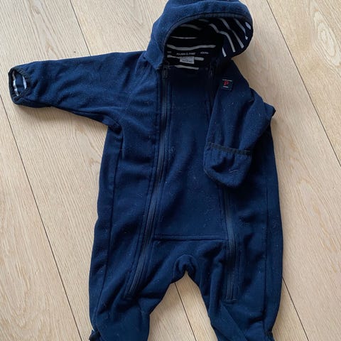 Polarn O. Pyret dress i bomull i str 68 (4-6mnd men er stor i str). Vindtett. Masse bruk igjen. Nyvasket. Luen til ve er i merinoull str 44/46 (4-9mnd)