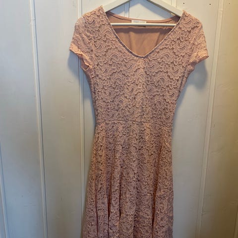 Ny Floyd festkjole i størrelse 38, laget av polyester. Kjolen er rosa og designet for kvinner. Den har et mønster som gir tekstur og et feminint uttrykk.
