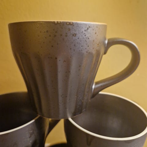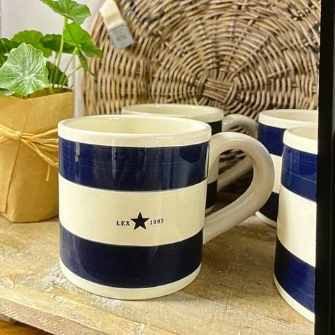 Lexington Company kopp med stripete design i nøytrale farger. Koppene er laget i keramikk og egnet for daglig bruk i kjøkkenet.