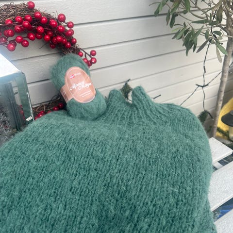 Jeg strikker mye på bestilling, men denne er til overs. Har aldri vært brukt. Fra røykfritt og dyrefritt hjem.