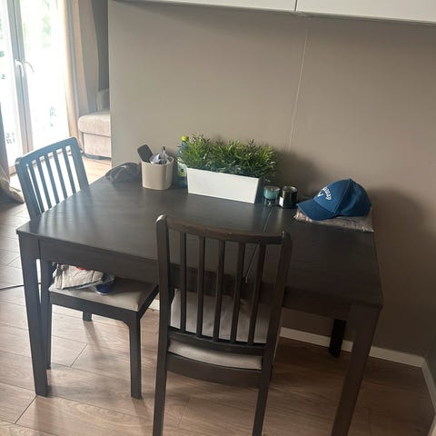 Pent justerbart stuebord. Praktisk for deg som har liten stue og trenger et bord med flere funksjoner. Bordet er utgått fra IKEA sitt sortiment. 2 små feil på overflaten, men har veldig lite å si både for bruken og helheten egentlig, se bilde.