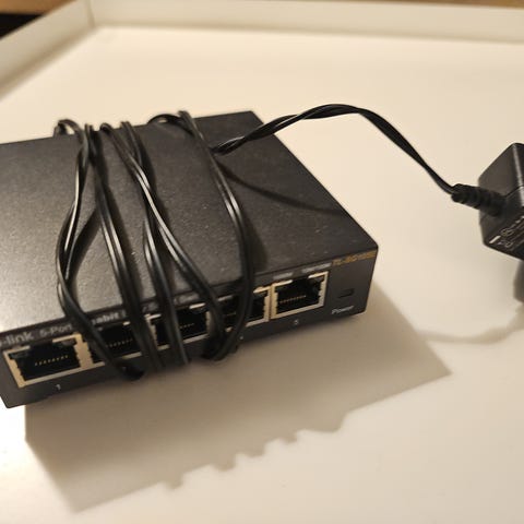 Netgear FS105 switch med 5 porter. Enheten støtter 10/100 Mbps hastighet for kablet nettverkstilkobling. Leveres med strømadapter.
