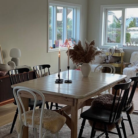 Pent brukt spisebord med få bruksmerker.