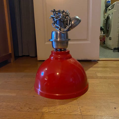 Industrilampe mål: diameter 50cm. Kjøpt for 2000kr ‘på låven ‘på Hvaler. Selges for kr 1100kr. Det er ikke IKEA lampe