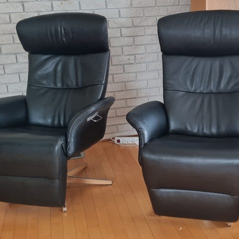 Lenestolen har flere justeringsmuligheter inkludert rygg, sving, nakkestøtte, benstøtte og høydejustering.