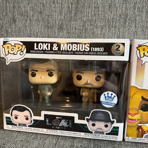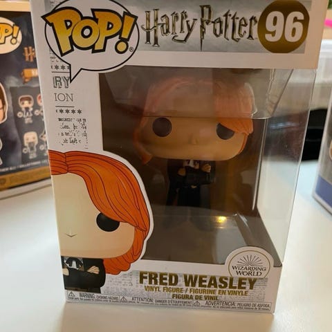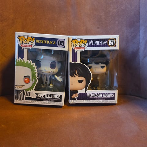 Funko Pop! Harry Potter samlerfigurer av karakterene Albus Dumbledore og Gellert Grindelwald. Figurenes størrelse og materiale er typisk for Funko Pop!-serien. Figurenes design er basert på karakterene fra Harry Potter-universet.