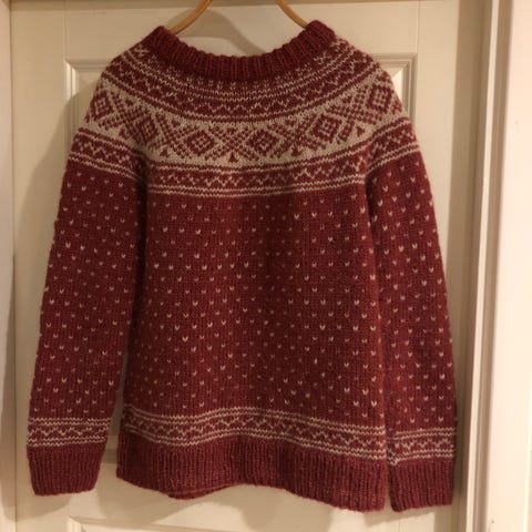 Flott strikkegenser i nydelig blå farge fra Jotunheimen 299,-