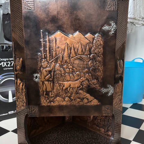 Skapet kan deles i to for lettere transport. Tungt skap. Står i første etasje med lett tilgang gjennom terrasedør.