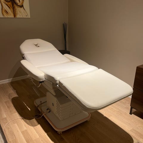 Godt brukt tattoo stol, synlige merker men fortsatt like stabil og brukbar. Mangler hodepute men ingen ulempe for det.