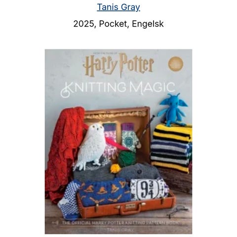 Harry Potter Knitting Magic strikkebok med offisielle Harry Potter-strikkemønstre. Boken inneholder ulike mønstre og instruksjoner for strikking inspirert av Harry Potter-universet.