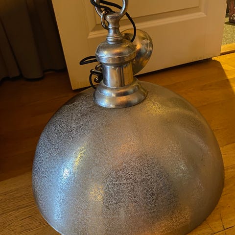 Industrilampe Rød diameter 35,5 cm. Kjøpt ‘på låven ‘på Vesterøy selges kr 1000.