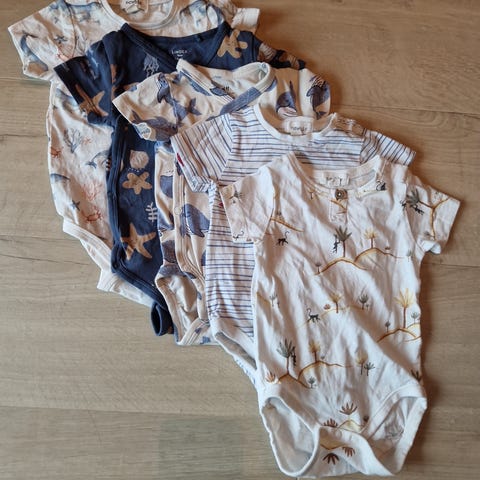 Selger tre pent brukte bodyer i str 68. Ingen bruksmerker. Bodyene er fra H&M og Newbie.