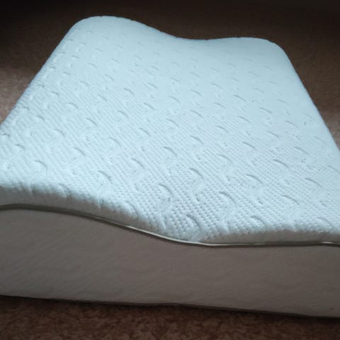Derila ergonomisk pute med hvitt trekk. Laget av minneskum.