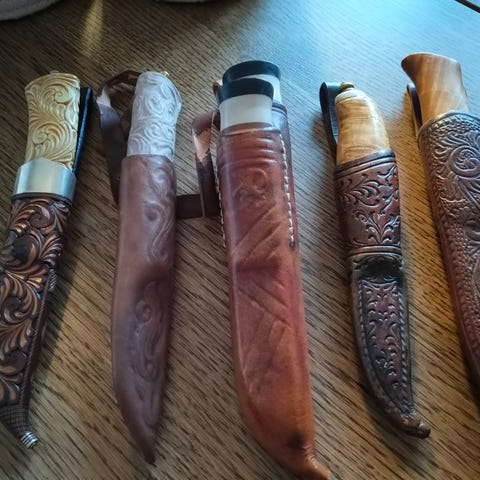 Samler kniver ,hovedsak kniv ned bein / tann i håndtak og lærslire av Halvor Slålien ,Gudbrandsdalen . Ønsker å kjøpe slike kniver ,har ev endel bytte kniver ( se bilde )